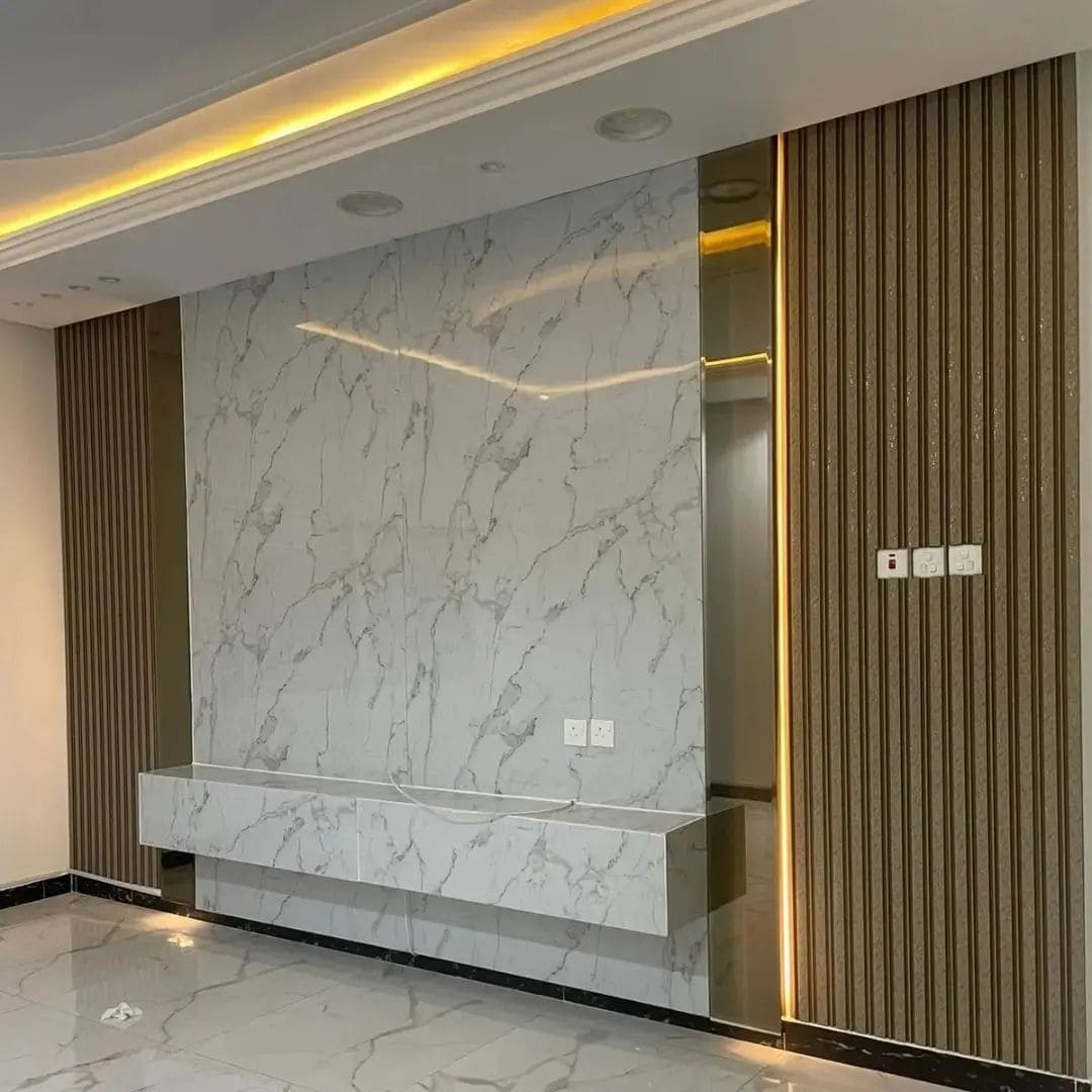 سطح إيبوكسي أبيض شديد اللمعان يعكس الإضاءة بشكل ممتاز، مثالي للمساحات التي تتطلب نظافة عالية.